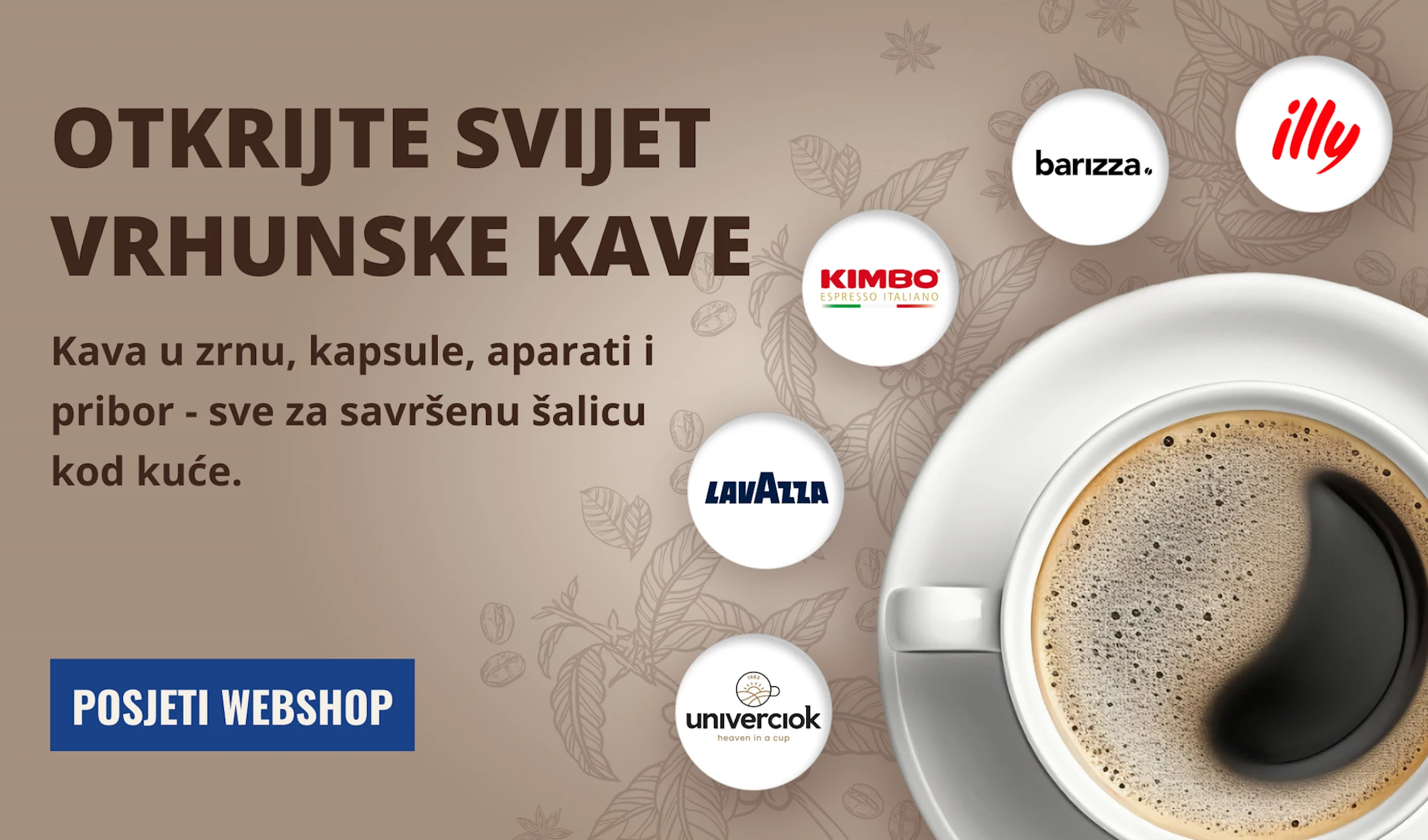 Najveći izbor kave u zrnu, kave u kapsulama, ugostiteljske opreme i dodatnog pribora.